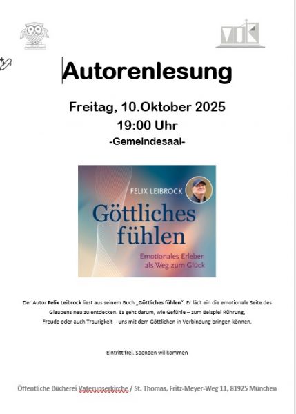 Autorenlesung Felix Leibrock: Göttliches fühlen am 10.10. um 19.00 Uhr