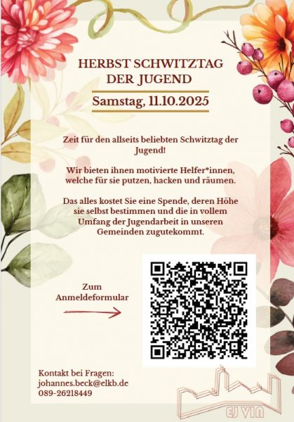 Wollen Sie die Fenster putzen, den Keller entrümpeln, den Garten winterfest machen, benötigen dabei Hilfe und wollen der Jugend unserer Gemeinde etwas Gutes tun? Dann ist der Schwitztag der Jugend genau das Richtige für Sie.